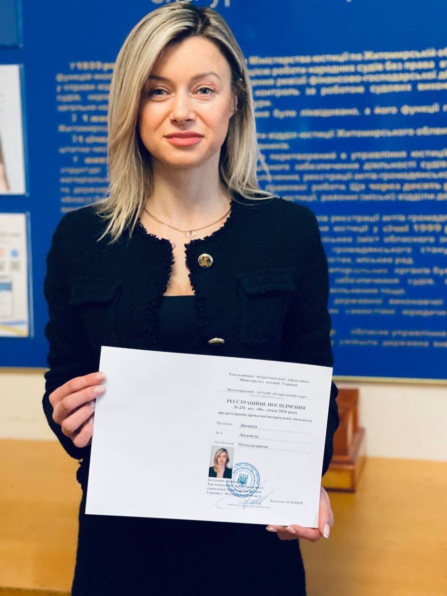 У Житомирському міському нотаріальному окрузі зареєстровано приватну нотаріальну діяльність приватного нотаріуса Дихавки Людмили Олександрівни.