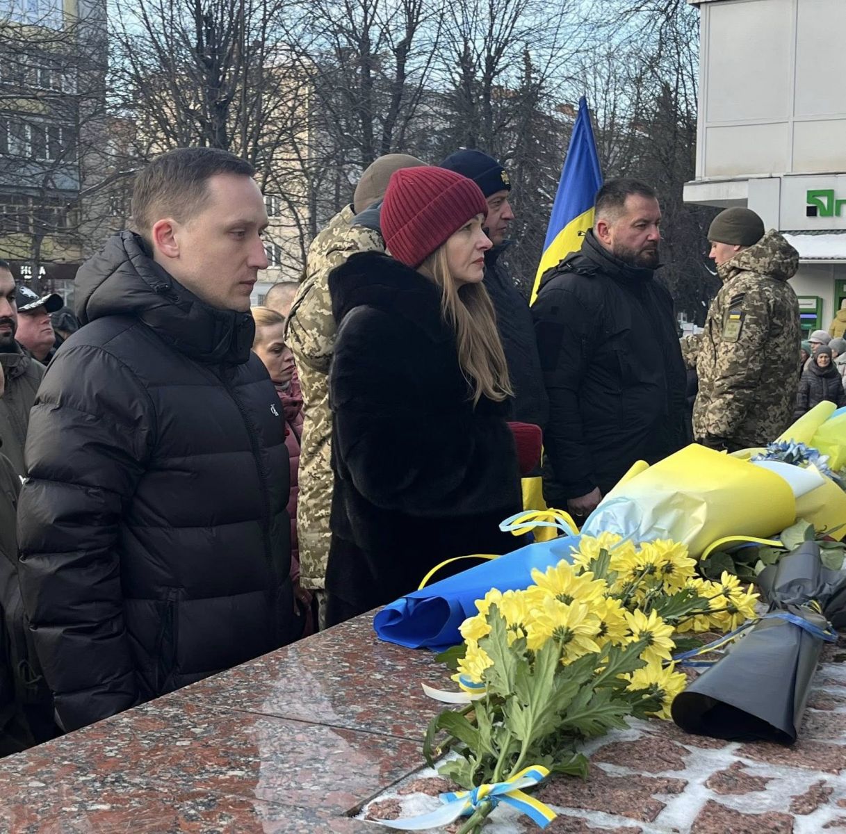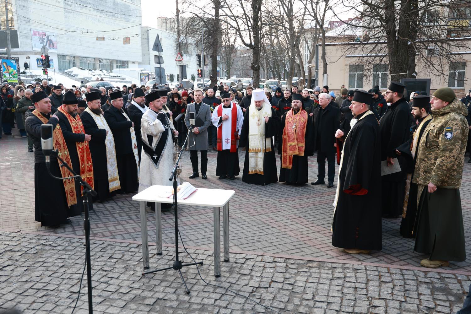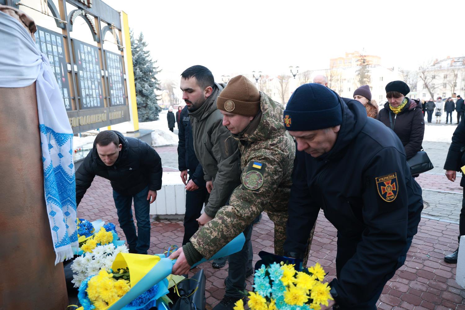 У Хмельницькому відбулася пам’ятна церемонія біля монумента Героям Небесної Сотні. Присутні долучилися до спільної молитви, вшанували полеглих хвилиною мовчання та поклали квіти до підніжжя пам’ятника.