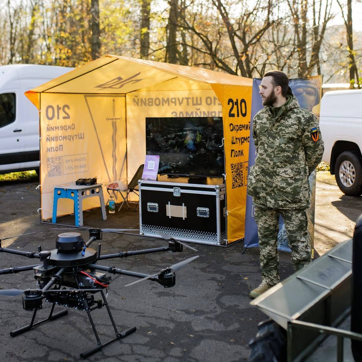 Почесні гості заходу — військовослужбовці 210 окремого штурмового полку ЗСУ — після фінішу продемонстрували учасникам роботу безпілотних систем та розповіли про їхнє застосування на фронті.