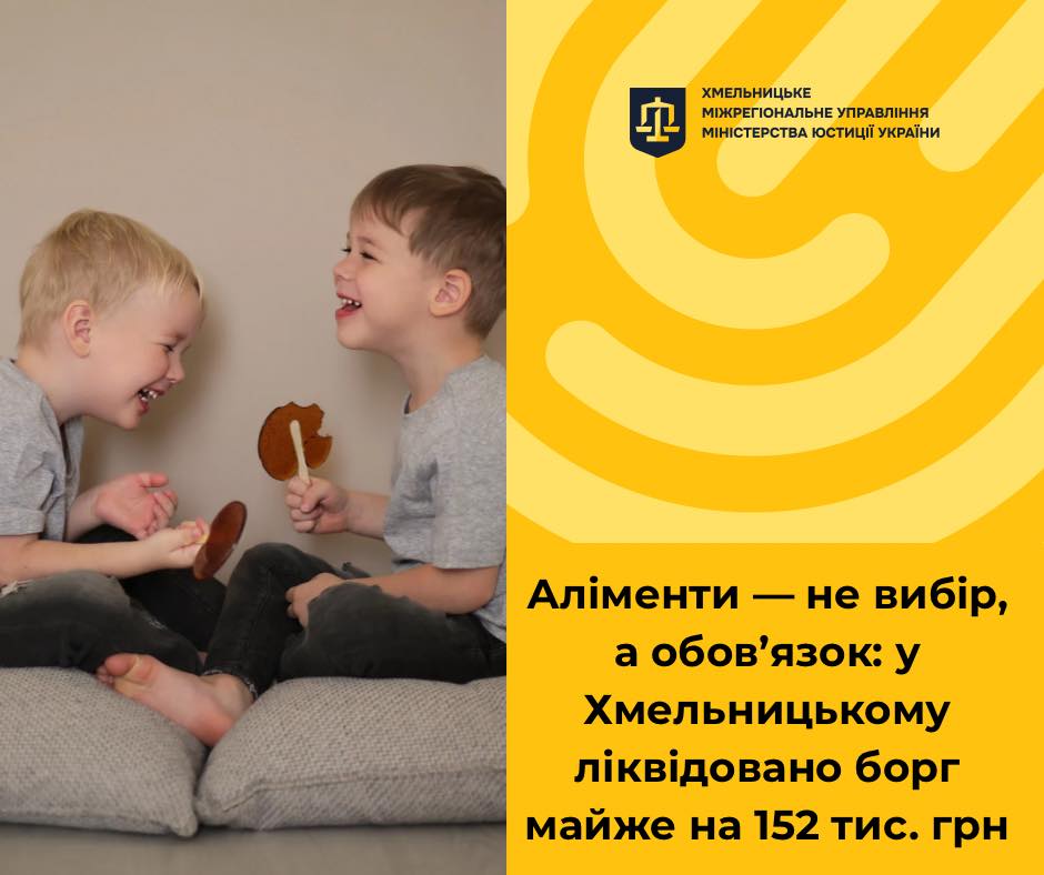 Аліменти — не вибір, а обов’язок: у Хмельницькому ліквідовано борг майже на 152 тис. грн