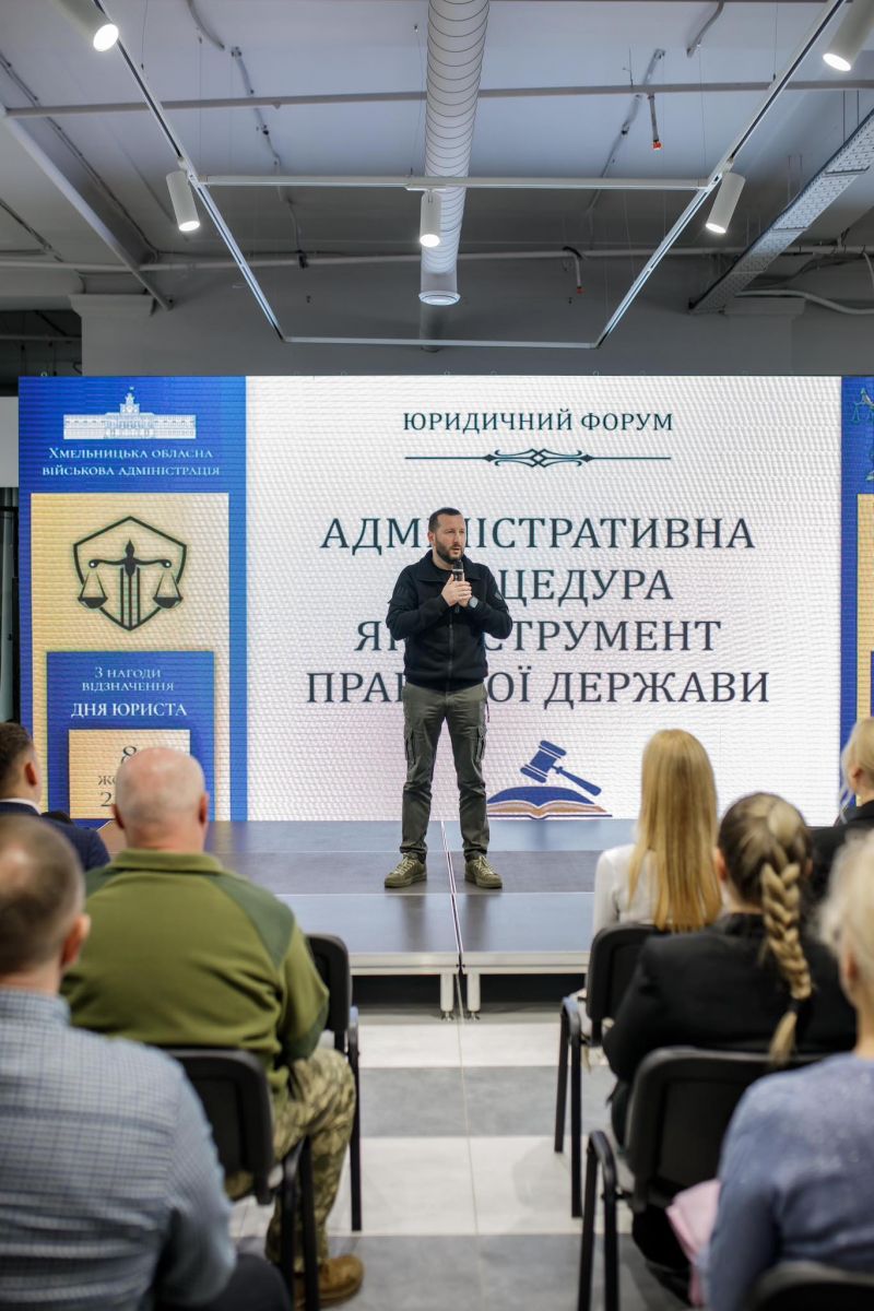 8 жовтня 2025 року у місті Хмельницькому, з нагоди Дня юриста, відбувся юридичний форум «Адміністративна процедура як інструмент правової держави», організований Хмельницькою обласною військовою адміністрацією.