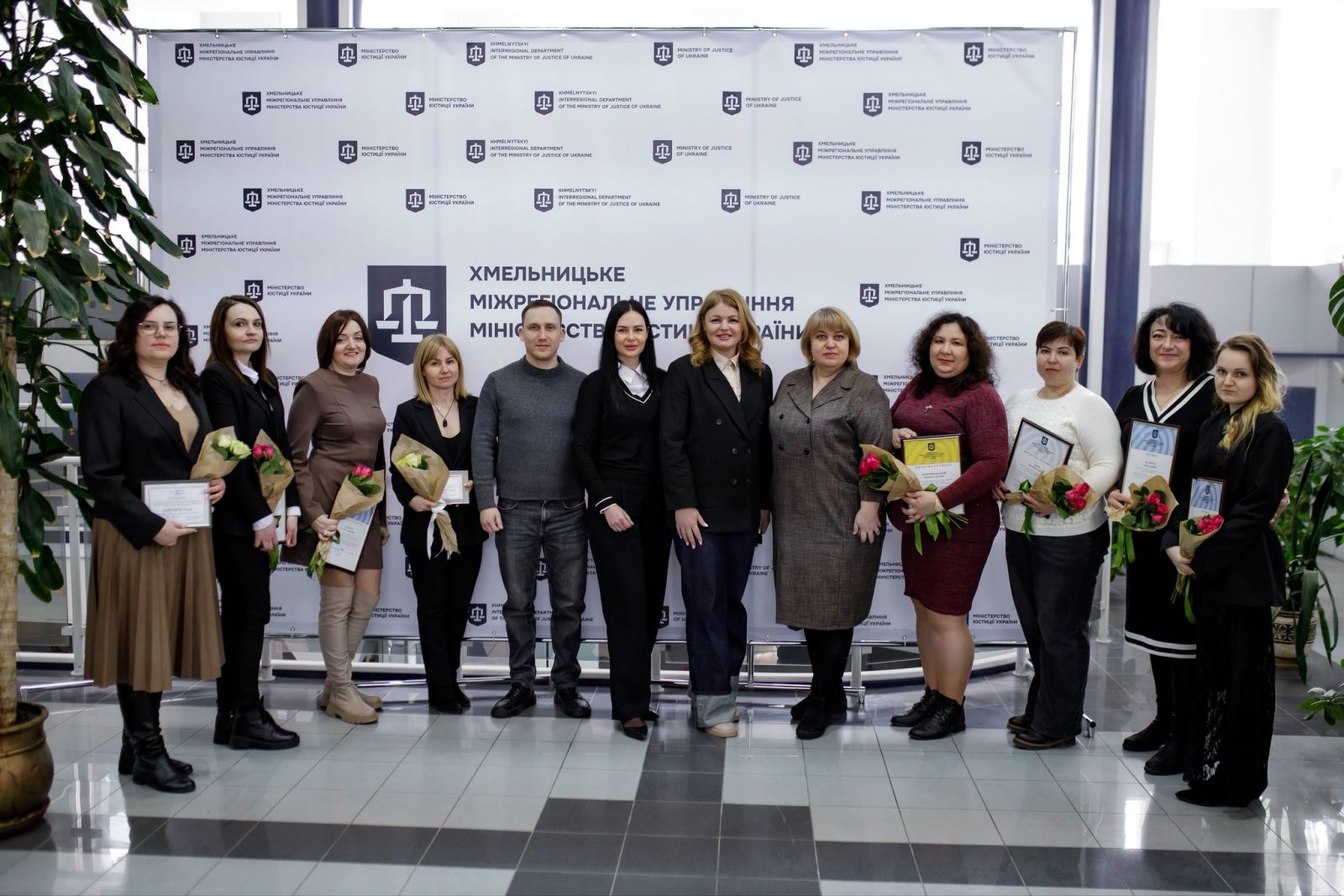 Начальник Хмельницького міжрегіонального управління Міністерства юстиції України Олена Токарчук вручила грамоти та подяки працівникам органів ДРАЦС, висловивши щиру вдячність колективам за їхню щоденну відповідальну працю. Вона наголосила на особливій місії працівників ДРАЦС, адже саме вони супроводжують людей у найважливіших моментах життя, фіксуючи події, що мають доленосне значення для кожної родини та для держави загалом. До привітань долучилася директор Державного архіву Хмельницької області Катерина Бурдуваліс.