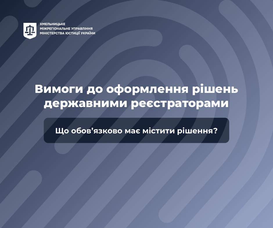 У каруселі нагадуємо основні вимоги до рішень у сфері державної реєстрації прав на нерухоме майно та державної реєстрації юридичних осіб.