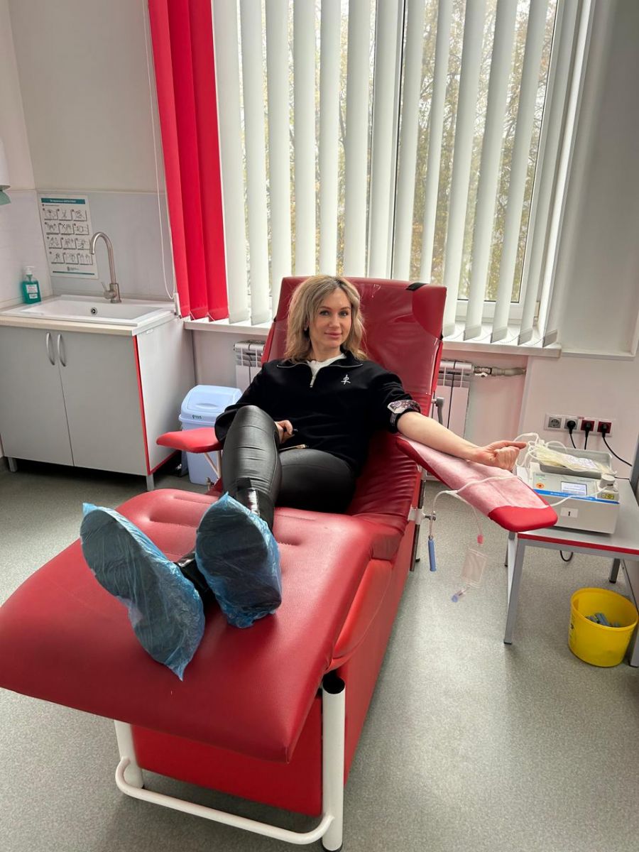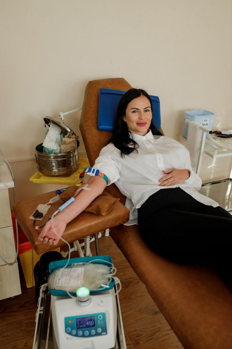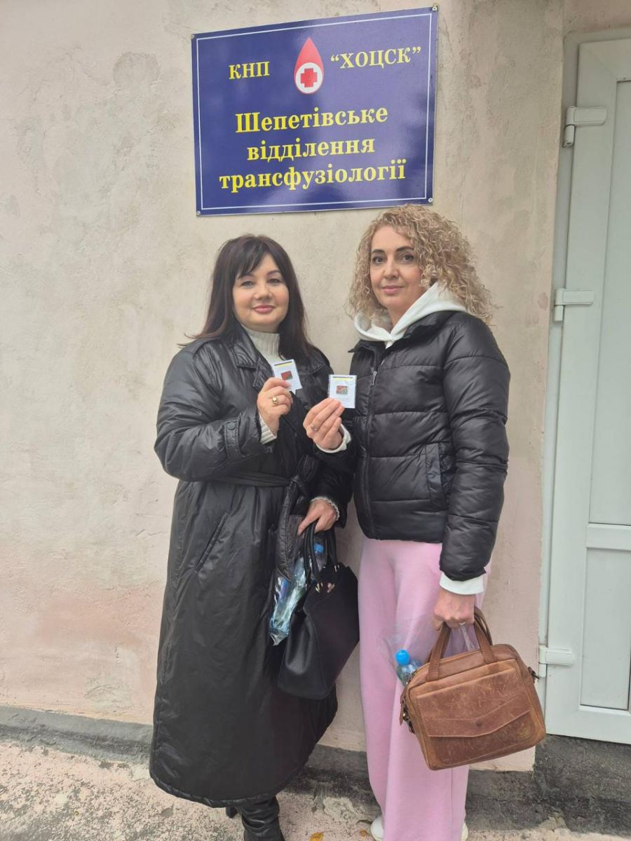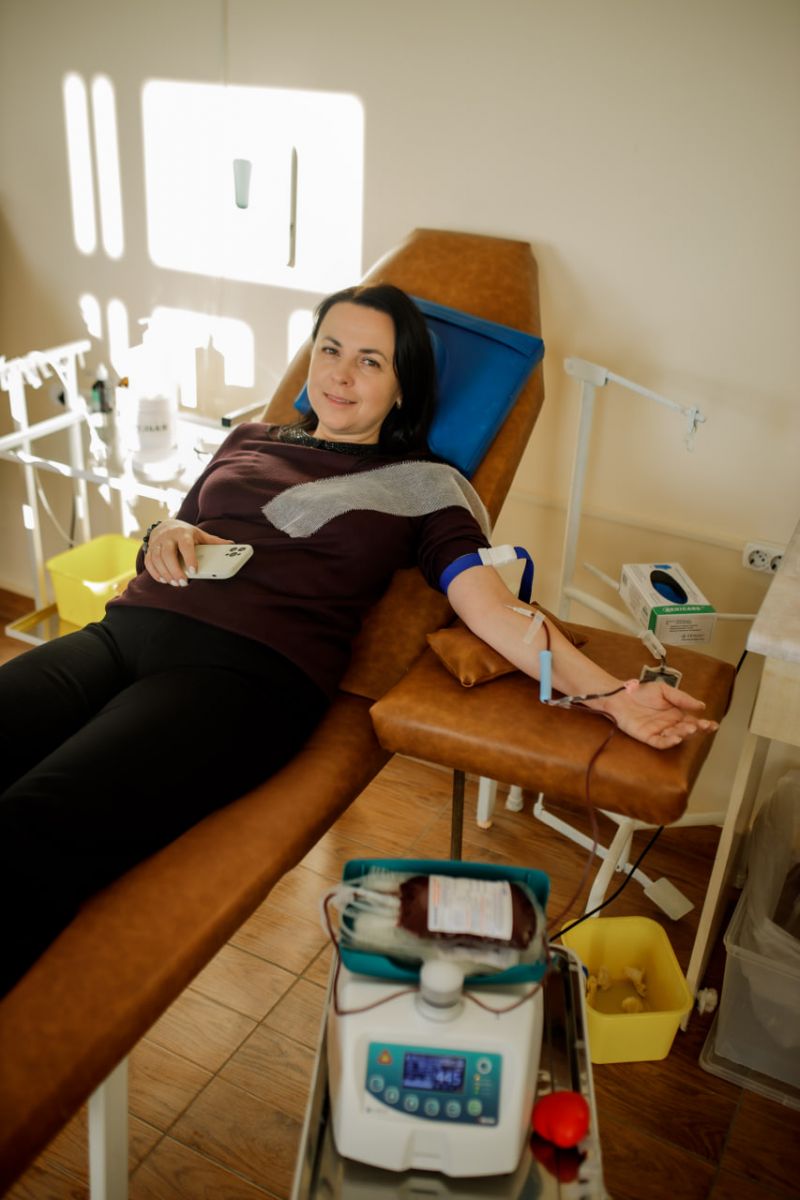 Начальник управління Олена Токарчук разом із працівниками управління здали кров у Хмельницькому обласному центрі служби крові.