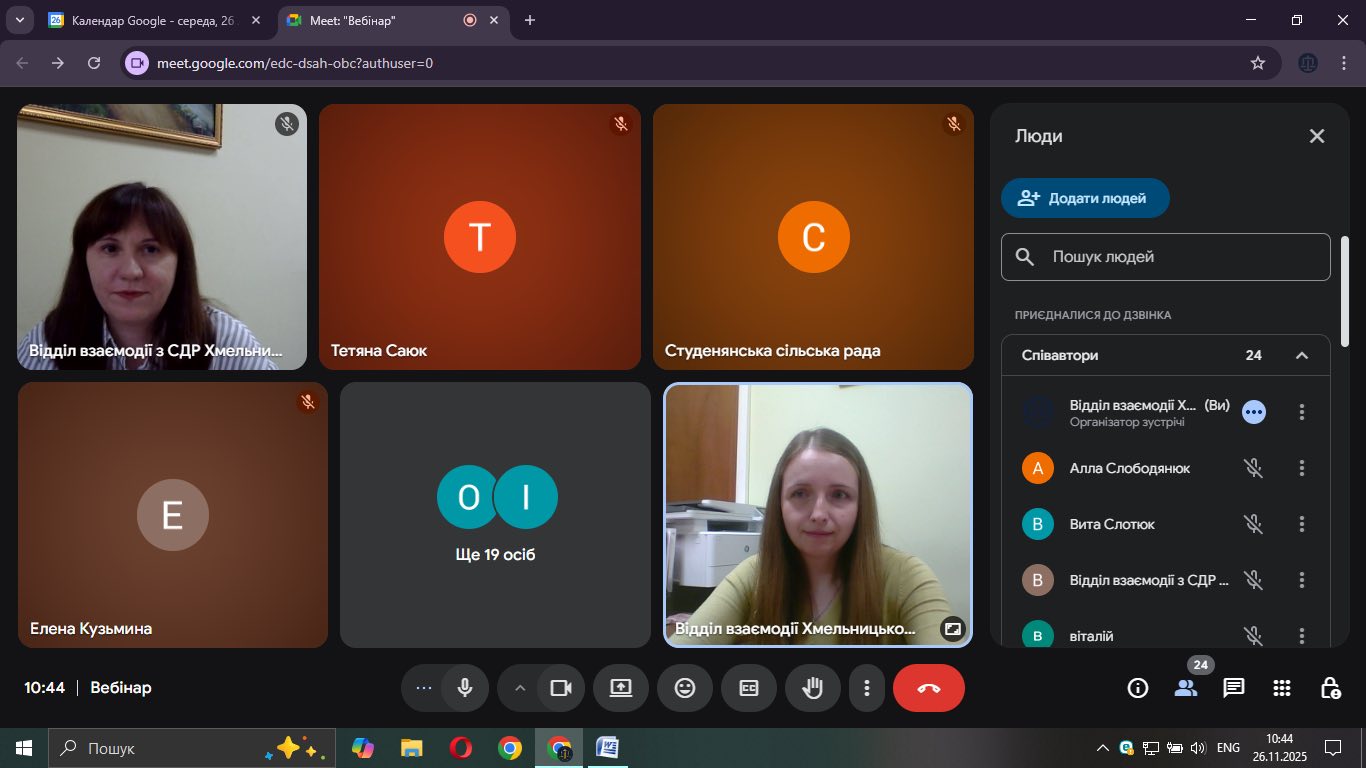 Начальник відділу взаємодії з суб’єктами державної реєстрації та підвищення кваліфікації державних реєстраторів Світлана Кадимова та головний спеціаліст відділу Наталія Заяць провели серію вебінарів, присвячених актуальним питанням у сфері реєстрації юридичних осіб для державних реєстраторів Вінницької, Житомирської та Хмельницької областей.