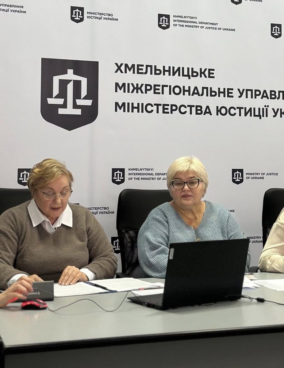 Окрема увага була приділена поданню звітності за 2025 рік. Заступник начальника управління – начальник відділу з питань нотаріату та фінансового моніторингу у Хмельницькій області Оксана Ревуцька та головний спеціаліст Юлія Паславська надали практичні рекомендації щодо правильності та своєчасності подання статистичної та адміністративної звітності.